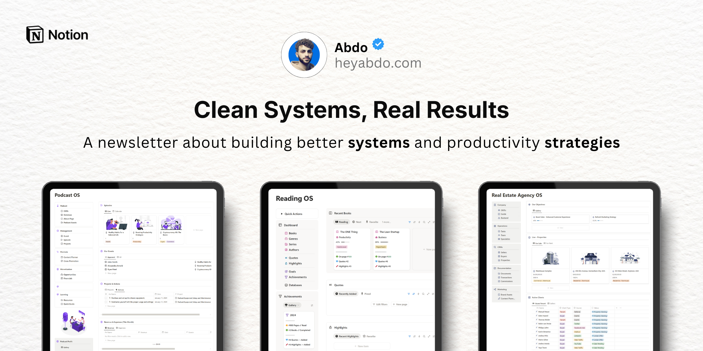 When I first started using Notion, I did everything wrong.- Too many dashboards.- Too many databases.- Way too much “aesthetic” tweaking. If I had to start over today, I’d do it differently. Here’s exactly how: 1. Start simple.One dashboard, not five. A central page with links to everything. 2. Build for function, not looks.A clean system > a pretty system. You can always add aesthetics later. 3. Focus on 3 pillars. A task manager → keep projects and to-dos in one place. A knowledge hub →...